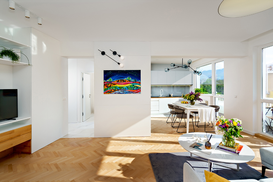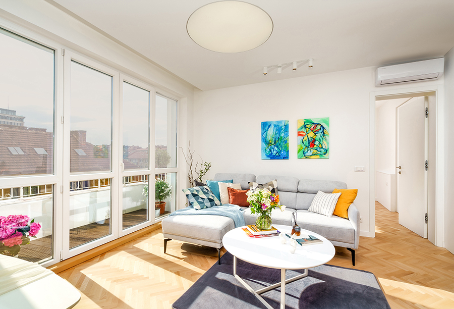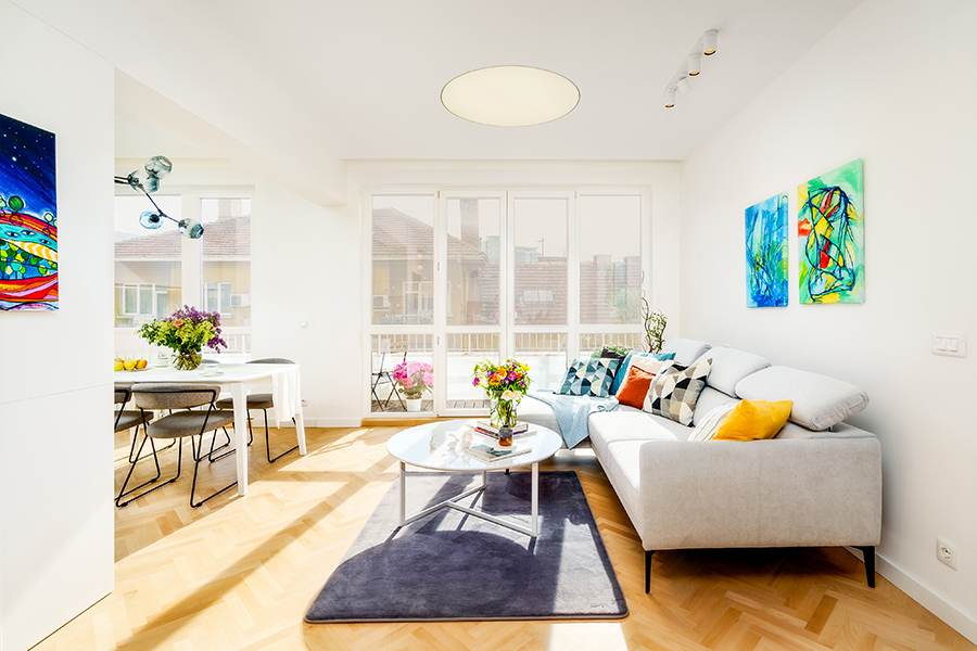 Този проект се намира в самото сърце на град София, в близост до красиви кафенета и зелени площи. Разпределението и довършителните работи са изцяло преработени. Всички пространства са изпълнени със светлина и предлагат светла гледка към района на Националния дворец на културата и планината Витоша.