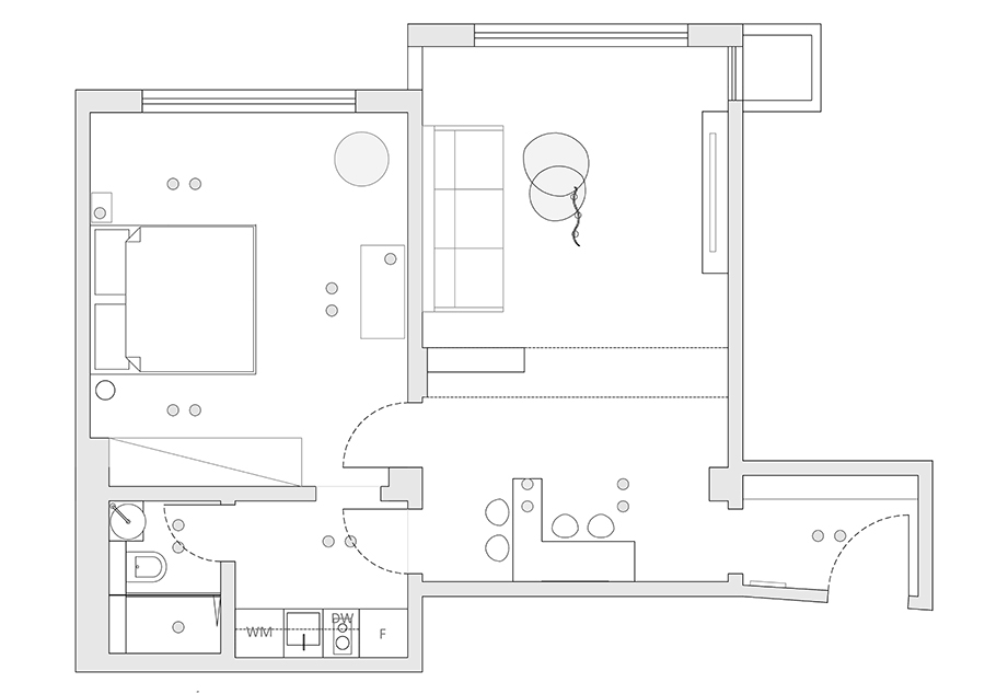 Този апартамент се намира в исторически квартал в самото сърце на София. При този проект подходихме по съвсем различен начин. Не променихме по никакъв начин функциите на помещенията, тъй като съществуващото разпределение вече беше логично и добре организирано.