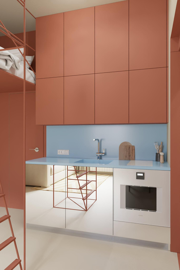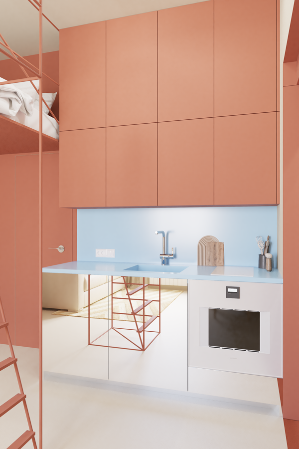 Този апартамент се намира на един от централните булеварди в София. Разположен е на партерен етаж и до този момент е бил използван като аптека. Пространството беше разделено на два самостоятелни обекта. Единият ще бъде трансформиран в градски караван, предназначен за отдаване под наем чрез Airbnb, а другият, който нарекохме Terracotta, ще се използва както за обитаване, така и за отдаване под наем.